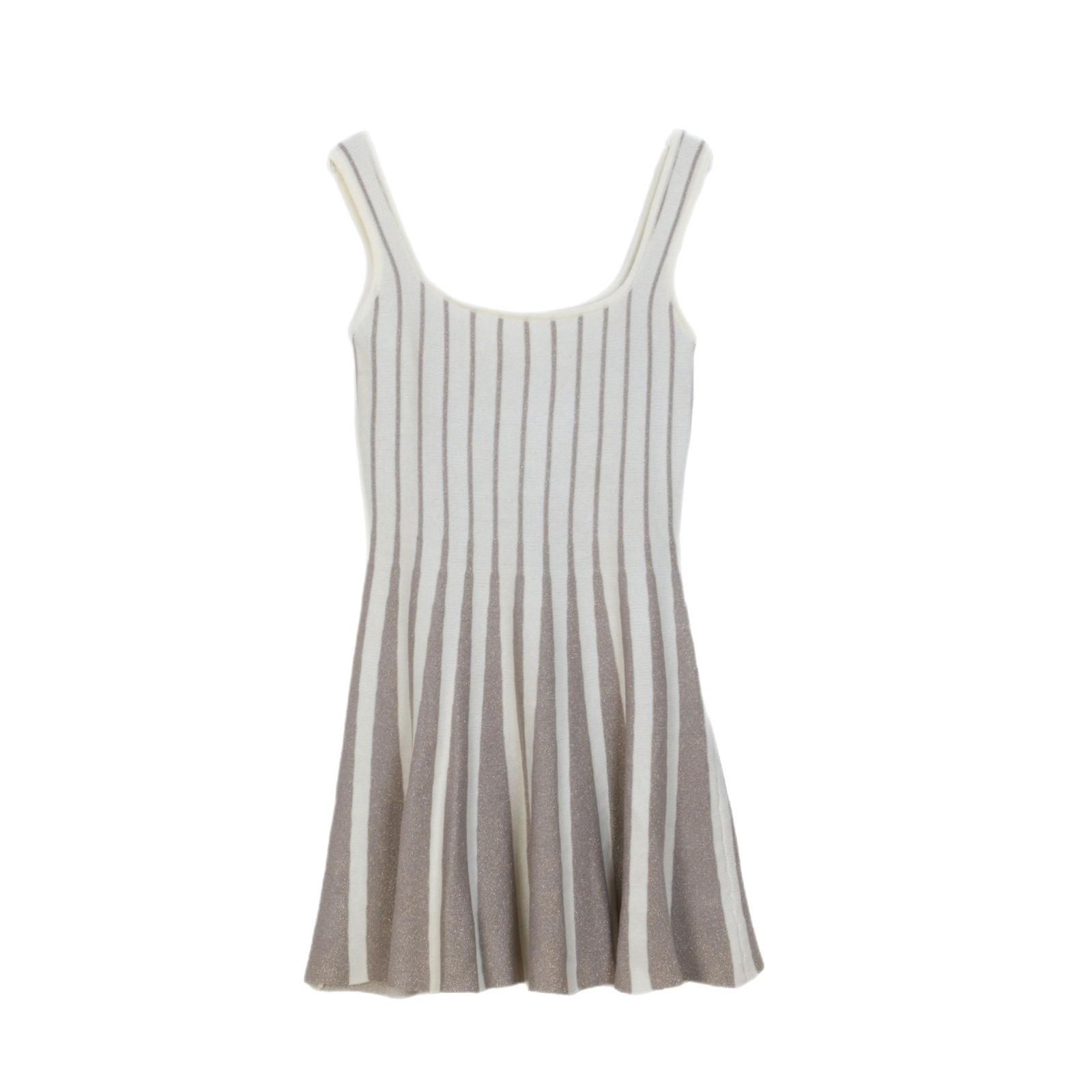 Вязаное платье с золотистой полоской во французском стиле: Утягивающая талия и летящая короткая юбка для женщин S