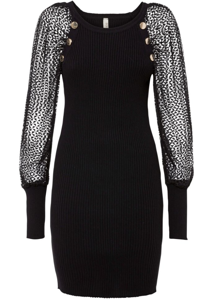 Вязаное платье с кружевом Bodyflirt Boutique, черный