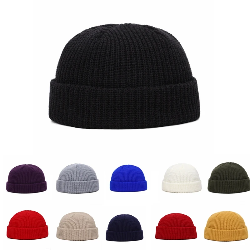 Вязаные зимние шапки, Женская Круглая Шапка без козырька, мужские шапки и шапки, черная шапка бини