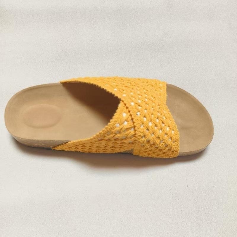 Вязаные шлепанцы с перекрестными ремешками, женская летняя обувь 2025, новая ретро платформа, ленивые туфли, пляжный отдых, крутые шлепанцы 35 жёлтый