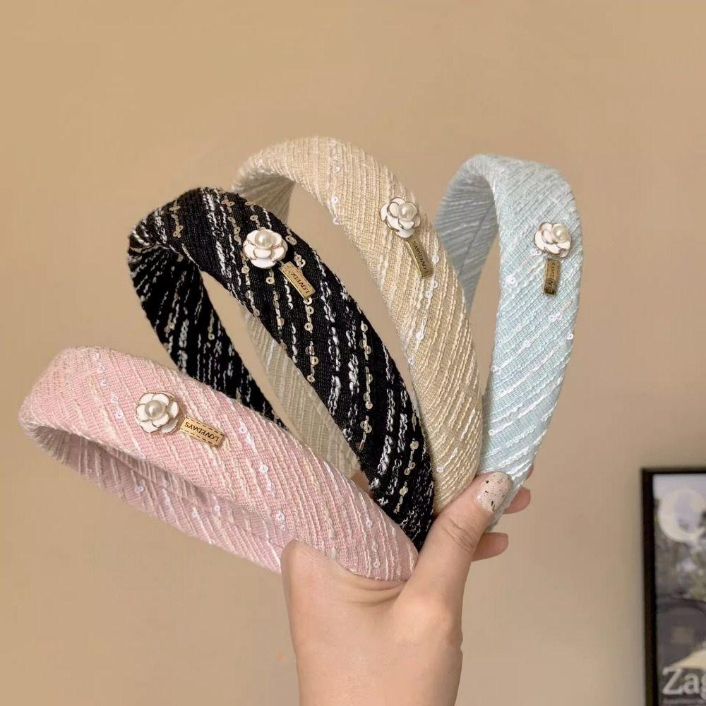 Вязаный обруч для волос с широкими полями, французская повязка на голову с камелией, элегантный обруч для волос в стиле ретро для девочек/женщин
