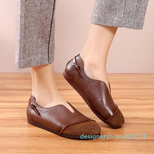 2019 new soft comfort splice cowhide leather shoes woman loafers shoes flat soft bottom retro driving fashion casual flats d01, Black