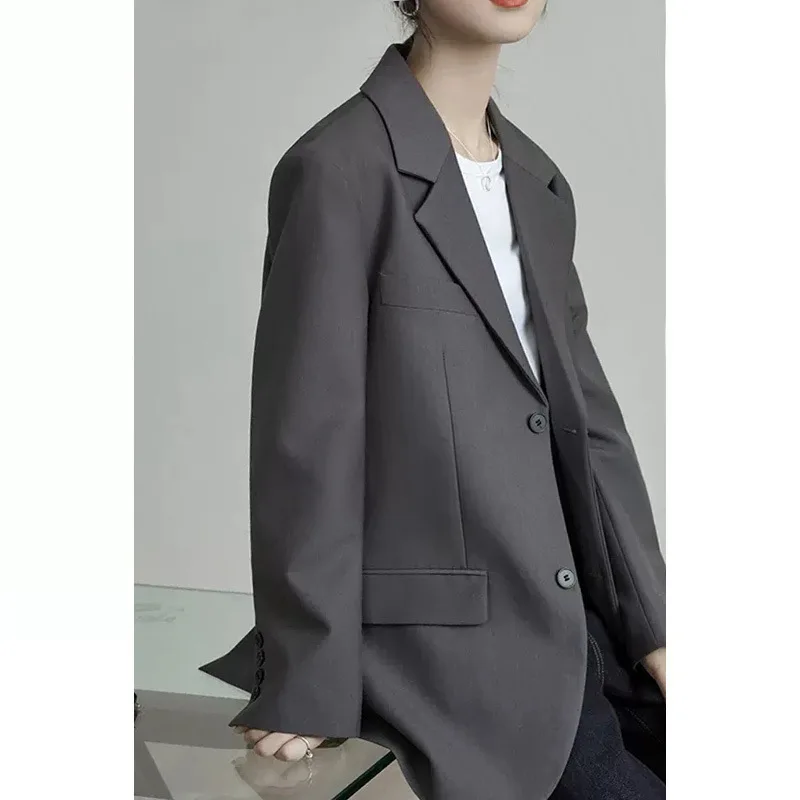 В весенний и осенний период и Nejavascript; Вт в английском стиле Показать Тонкий серый костюм пальто свободного покроя, ощущения