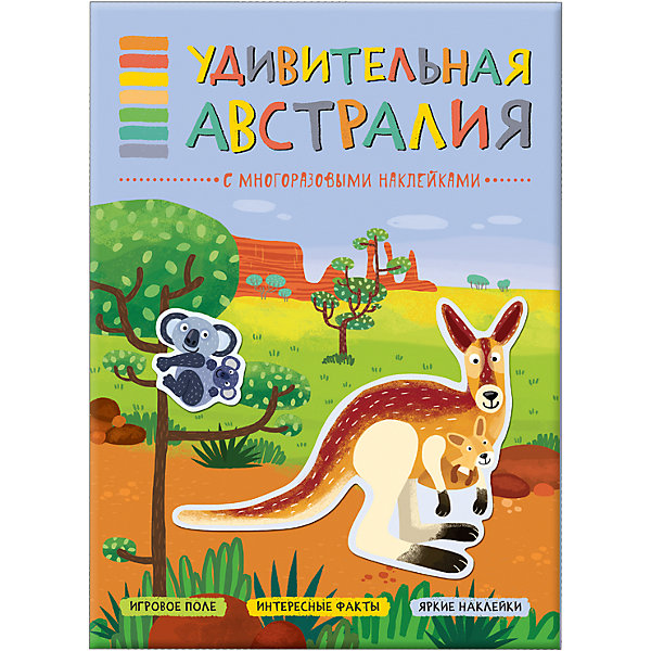 Помимо множества занимательных фактов внутри книги малыша ждет сюрприз – большая панорамная иллюстрация с изображением австралийского пейзажа. Дополняя ее яркими многоразовыми наклейками – животными Австралии, он не только закрепит новые знания, но и создаст красочный плакат, которым можно украсить стены комнаты.