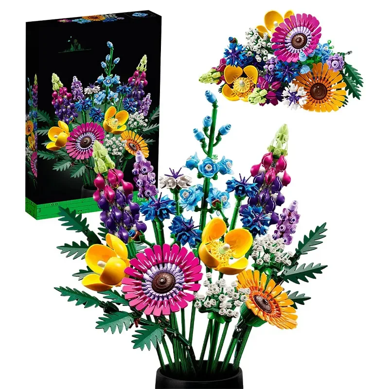 В наличии букет цветов из фомантических роз, Орхидея, строительные блоки, кирпичи, игрушка «сделай сам», иллюстрация в горшке, подарки для подруги