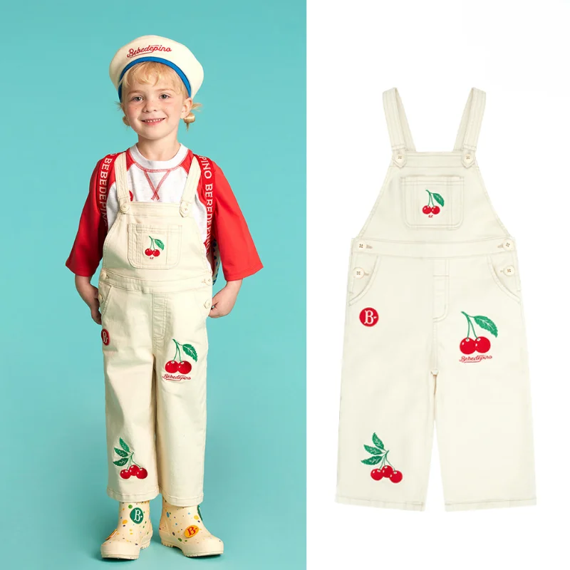 (В наличии) 베베베베 베 2023 весенние бежевые повседневные брюки для мальчиков и девочек