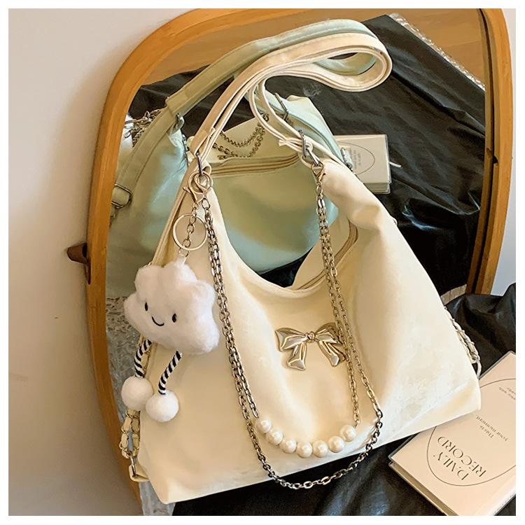 В этом году популярная большая вместительная сумка-тоут на двойном плечевом ремне, новая простая летняя сумка через плечо с цепочкой, многофункциональная сумка-тоут Without pendant