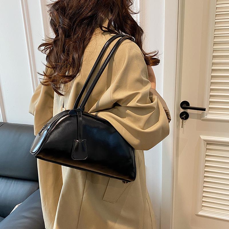 В этом сезоне осенняя нишевая новая сумка Boston, ручная сумка-багет подмышкой, ретро-универсальная повседневная сумка через плечо 28*11*14 чёрный