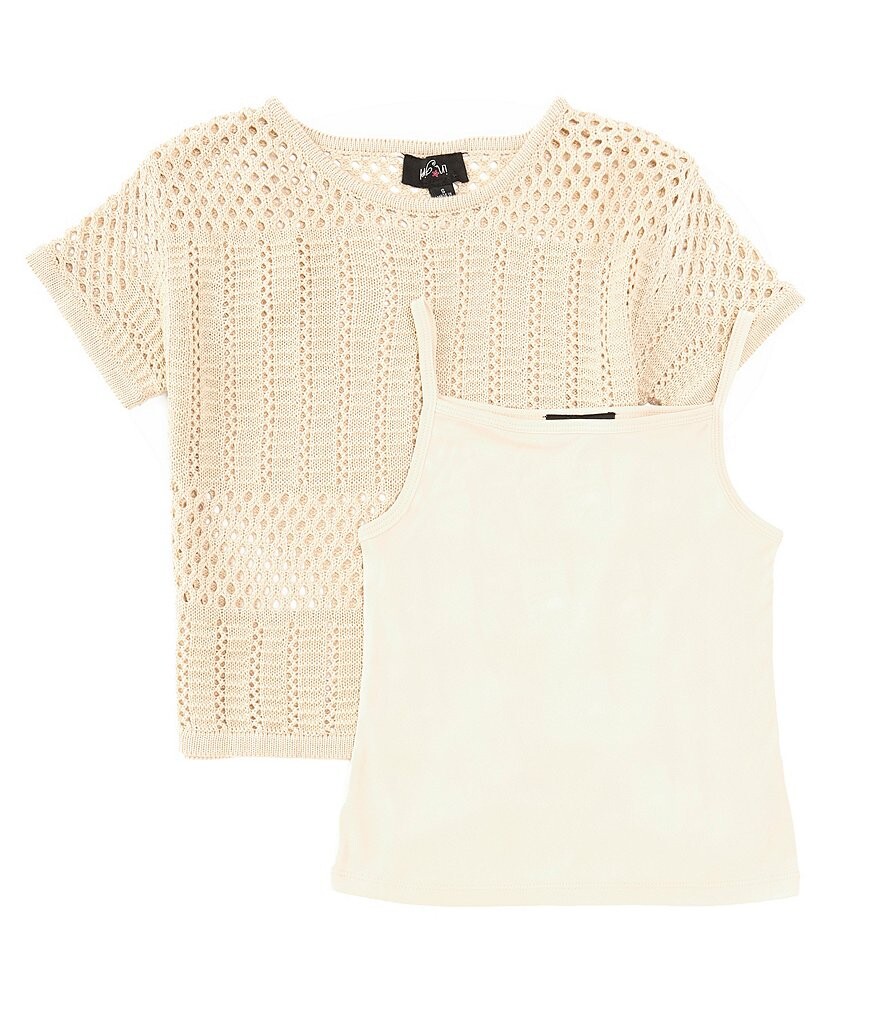 В. Комплект из свитера с короткими рукавами и однотонной майки без рукавов для девочек 7–16 лет I.N. Girl, бежевый