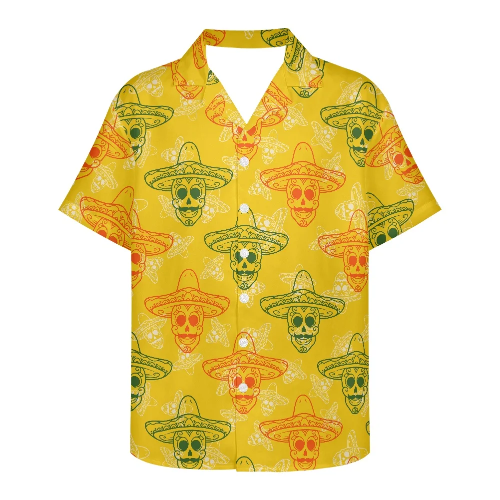 Гавайская Мужская рубашка с коротким рукавом, забавная ужасная пляжная одежда для отпуска, с рисунком черепа на Хэллоуин, лето