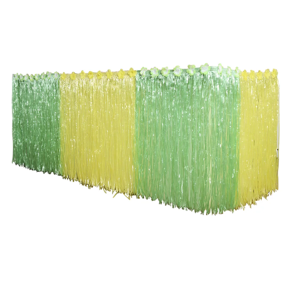 Гавайская Юбка для вечевечерние 276x75 см, пластиковая настольная юбка для украшения вечевечерние НКИ Luau (желтая и зеленая)