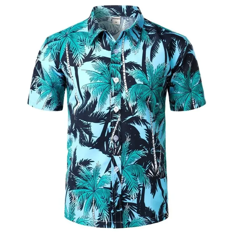 Гавайская рубашка в стиле унисекс, летняя одежда для мужчин, свободные однобортные Топы большого размера с 3d рисунком пальмы, короткими рукавами и V-образным вырезом, 2024