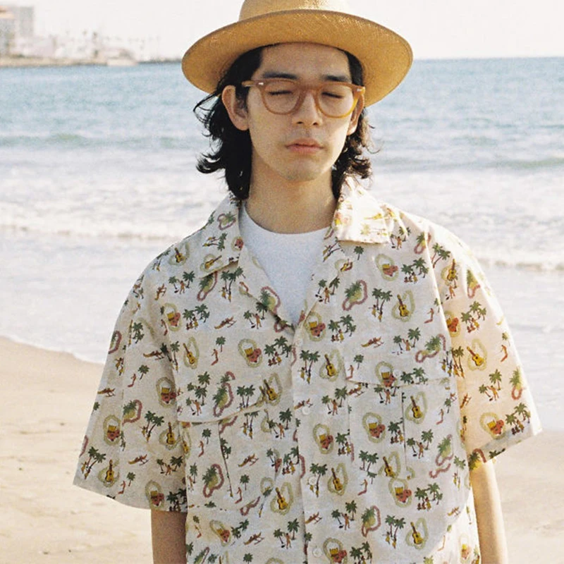 Гавайская рубашка с цветочным принтом для путешествий, мужская рубашка с кубинским воротником и пуговицами, женская рубашка в стиле ретро, японская Свободная рубашка с коротким рукавом, лето
