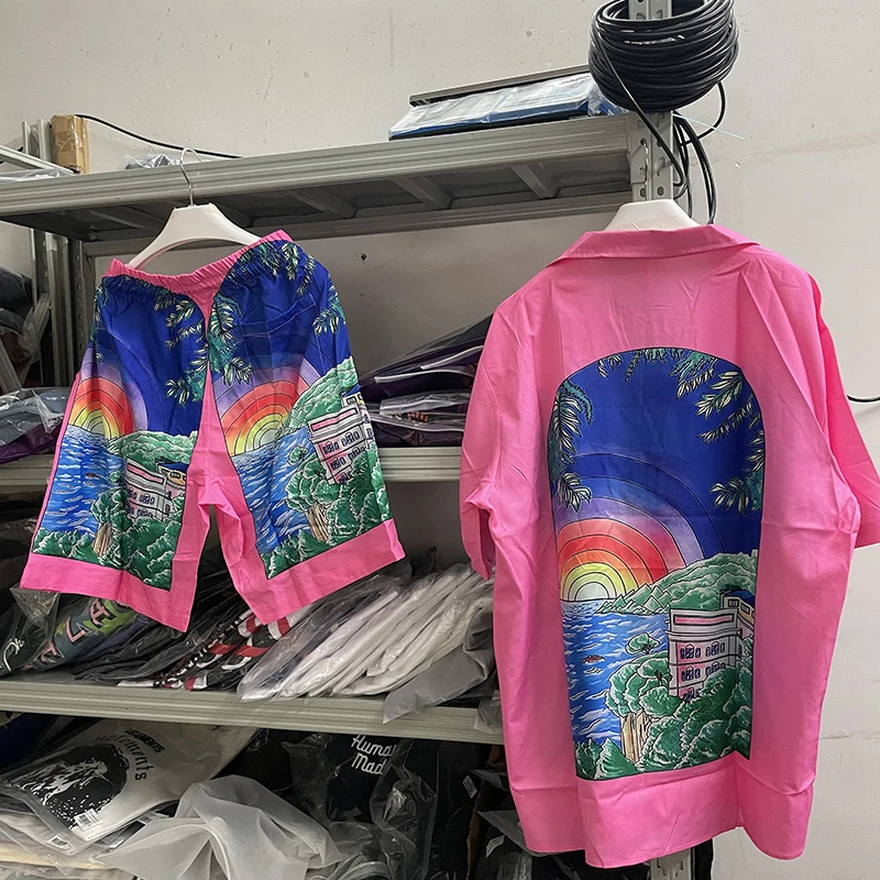 Гавайская рубашка 2023ss с розовым радужным рисунком Касабланки для мужчин и женщин