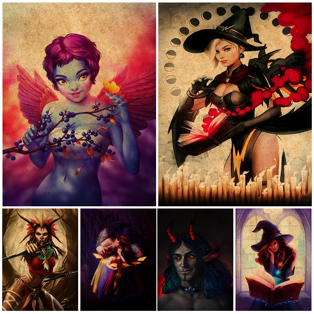 Гадание Ведьма и Фея Ретро Настенная Картина Маслом Украшения Дома Плакат Волшебника Джунглей