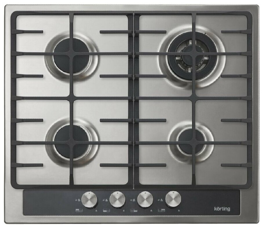 Газовая варочная панель Korting HG 665 CTGX, 4 конфорки, серебристая (HG 665 CTGX), HG 665 CTGX