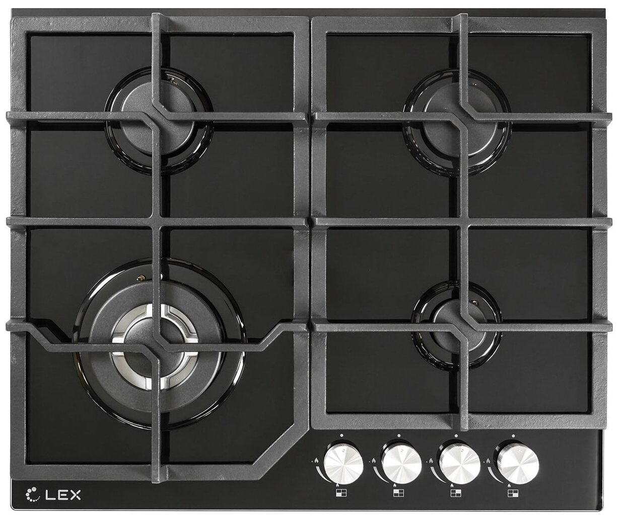Газовая варочная панель Lex GVG 640-1 BL, 4 конфорки, черный (CHAO000176), Черная, GVG 640-1 BL