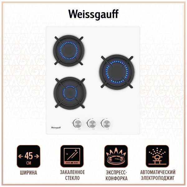 Газовая варочная панель WEISSGAUFF HG 430 WGH, 3 конфорки, белый (430946), HG 430 WGH
