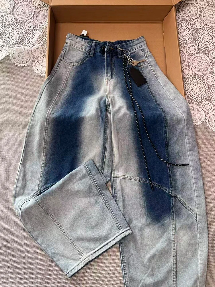 Американские джинсы контрастного цвета для женщин, свободные джинсовые брюки с высокой талией, модные уличные винтажные широкие брюки