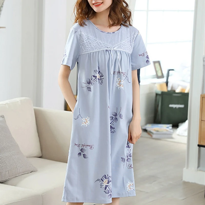 Женское ночное платье с цветочным принтом, летние ночные рубашки, тонкая ночная рубашка с коротким рукавом и принтом, домашняя одежда