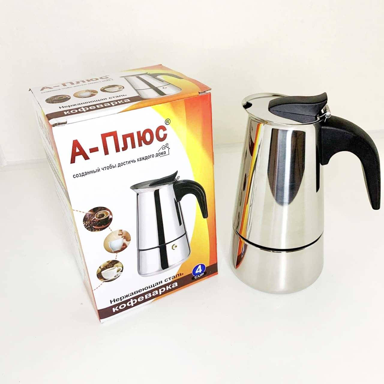 Гейзерная кофеварка на 4 чашки A-Плюс 2087 нержавеющая сталь