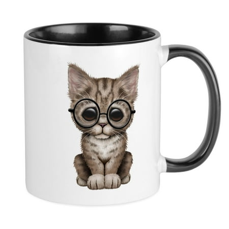 CafePress - Cute Tabby Kitten With Eye Glasses Mugs - Ceramic Coffee Tea Novelty Mug Cup 11 oz