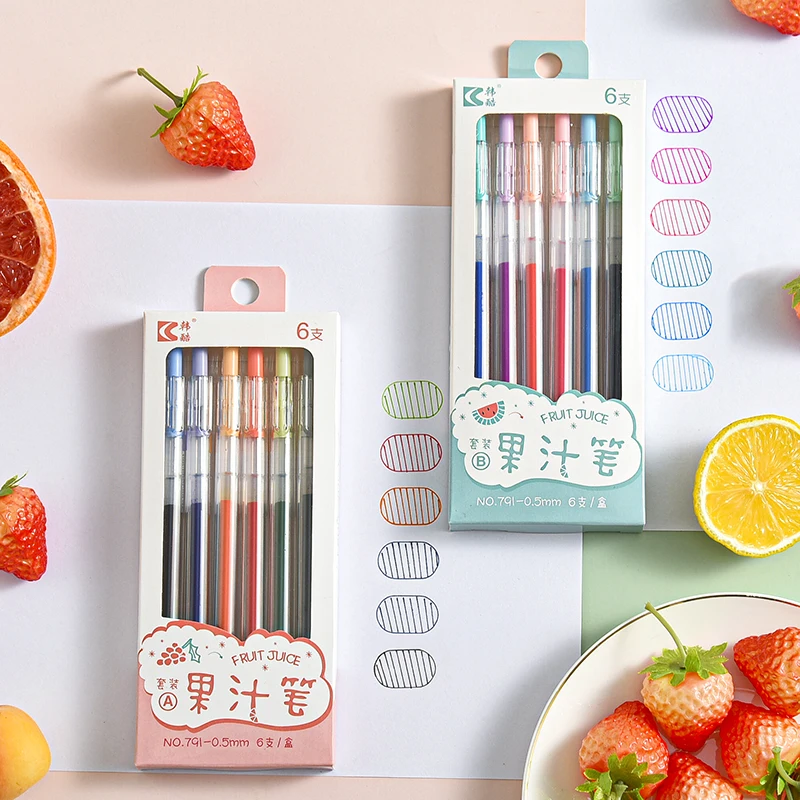Гелевая ручка 6 цветов/набор, гелевая ручка 0,5 мм с выделением морди, ручки с гелевыми чернилами для школы и офиса, книжка-раскраска для рисов...