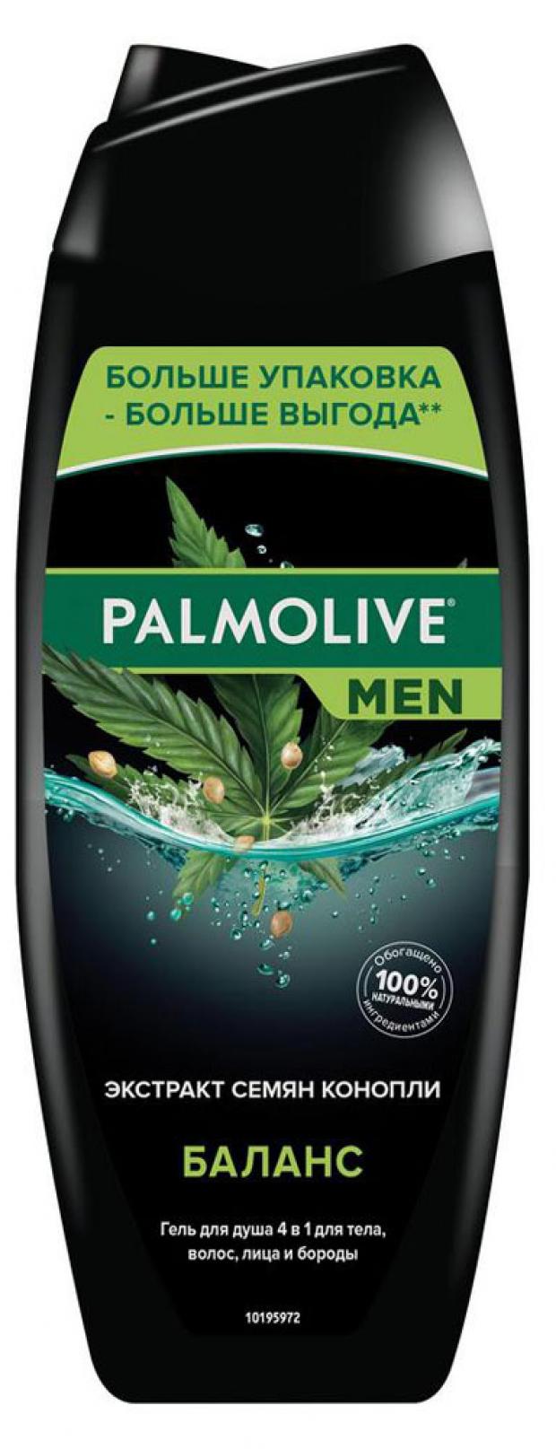 Гель для душа мужской Palmolive Men Баланс 4 в 1 для тела волос лица и бороды с экстрактом семян конопли, 500 мл