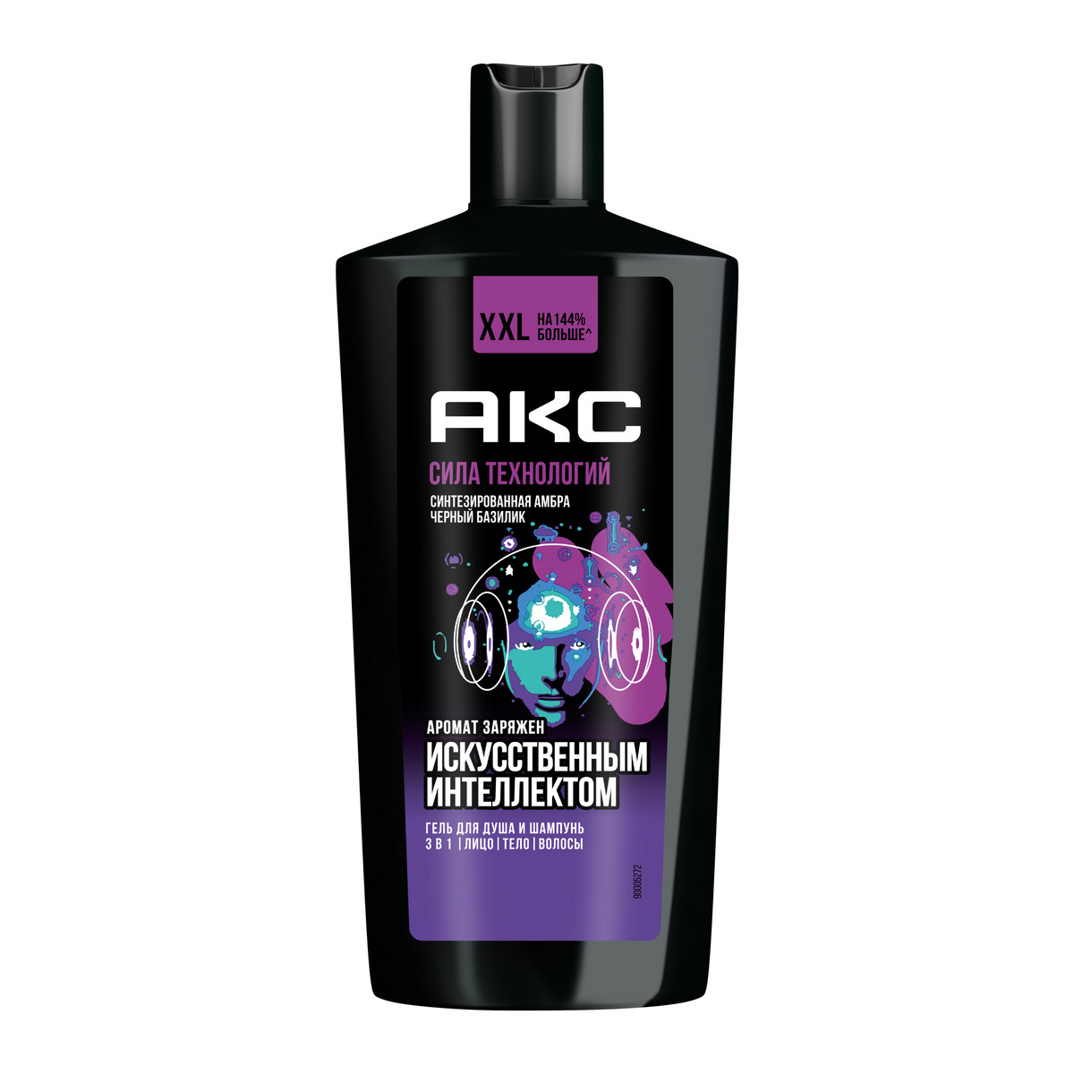 Гель для душа и шампунь Акс С пребиотиками и увлажняющими ингредиентами аромат заряжен искусственным интеллектом, 610 мл