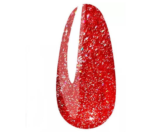Этот гель лак оранжево-красного цвета с голограммными частицами.