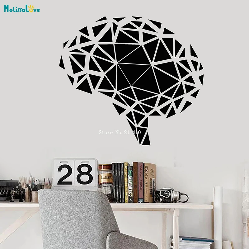Геометрические многоугольные наклейки с мозгом, наклейка на стену, луна, офисный декор, новый художественный дизайн, Съемные Фрески с мышле...