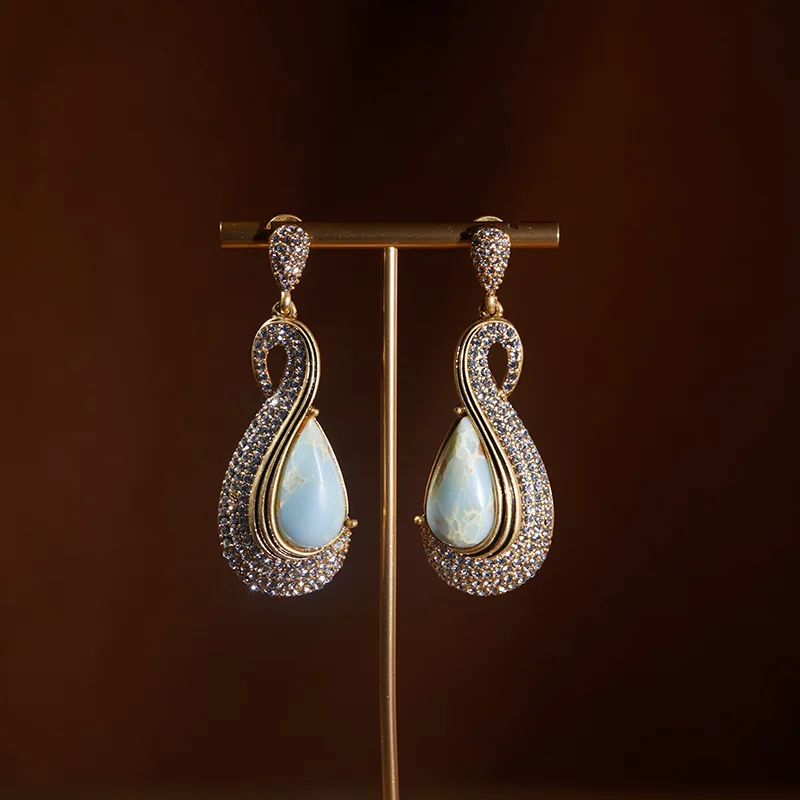 Геометрические серьги-капли с инкрустированными бриллиантами для женщин
