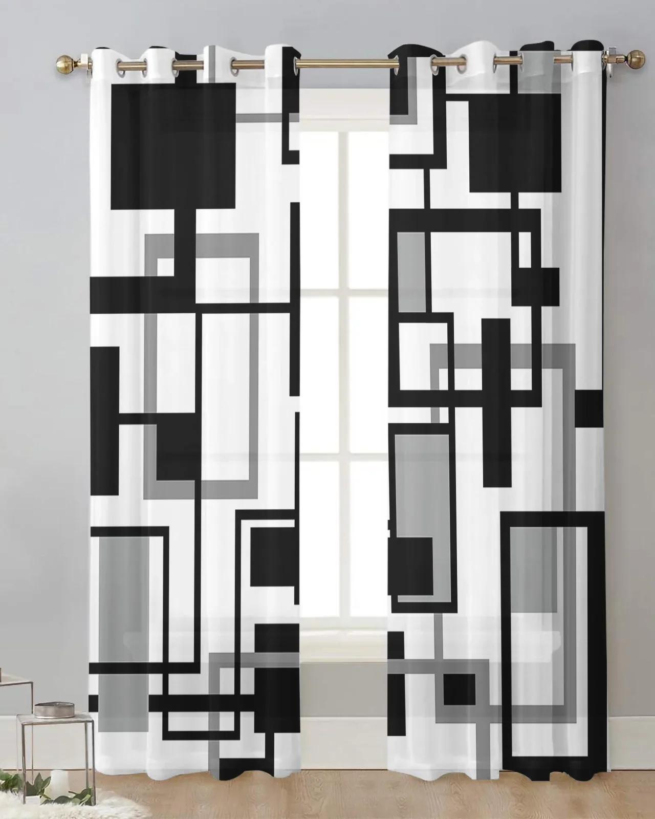 Геометрические черно-бело-серые тюлевые занавески для гостиной, спальни, современные прозрачные занавески для оформления окна W135 x H230cmx2