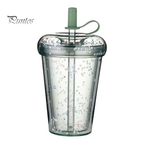 Герметичная чашка для холодного кофе, многоразовая прямая пипеточная чашка со встроенными соломинками, двухстенный изолированный стакан для холодного кофе, мультяшная чашка для питья S зелёный