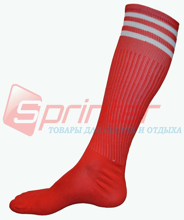 Гетры футбольные детские красные с полосками. М-150