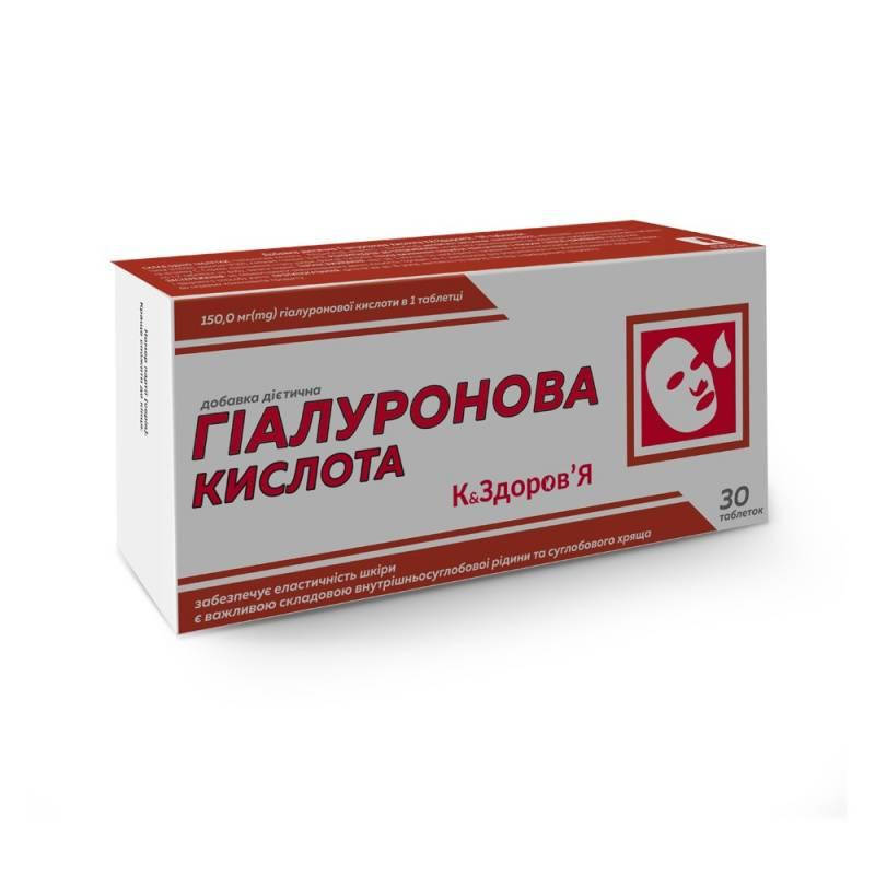 Гиалуроновая кислота К&ЗДОРОВЬЯ (150 мг гиалуроновой кислоты) 30 таблеток по 250 мг