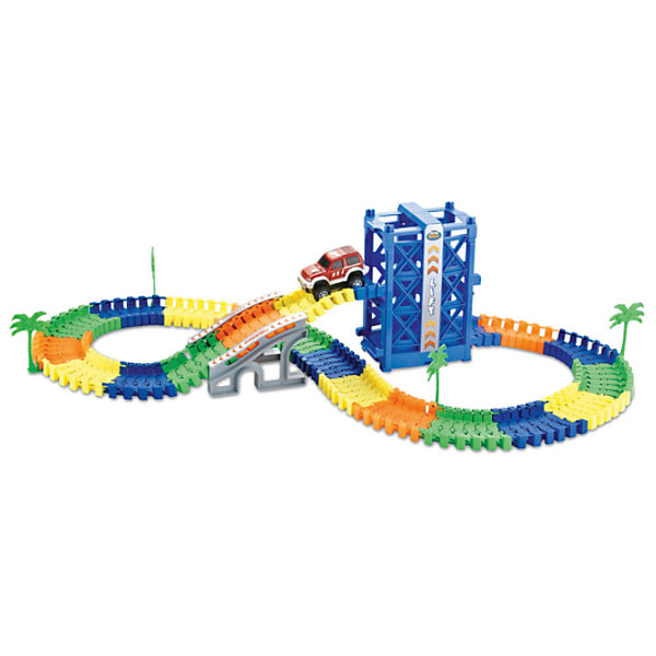 Гибкий трек «Большое путешествие» 128 деталей 1toy позволит детям устроить захватывающие гонки. Детали трека позволяют создавать собственную трассу, комбинируя возможные варианты. Можно создать трассу с крутыми поворотами, петлями, круговую дорогу, даже сделать ее вогнутой. В наборе имеется один из интересных элементов — автоматический подъемник. При заезде на первый уровень подъемник поднимает машинку на второй, а она съезжает по спуску. Все элементы выполнены из прочного пластика.