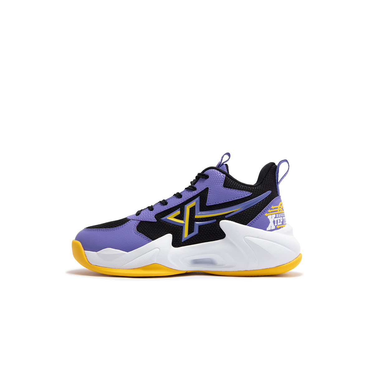 XTEP Детские баскетбольные кроссовки с низким верхом, устойчивые к износу, черные, с гортензией и фиолетовым верхом