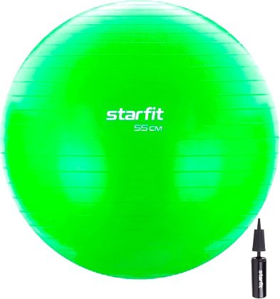 Гимнастический мяч Starfit GB-106 55 см антивзрыв + ручной насос (зеленый)