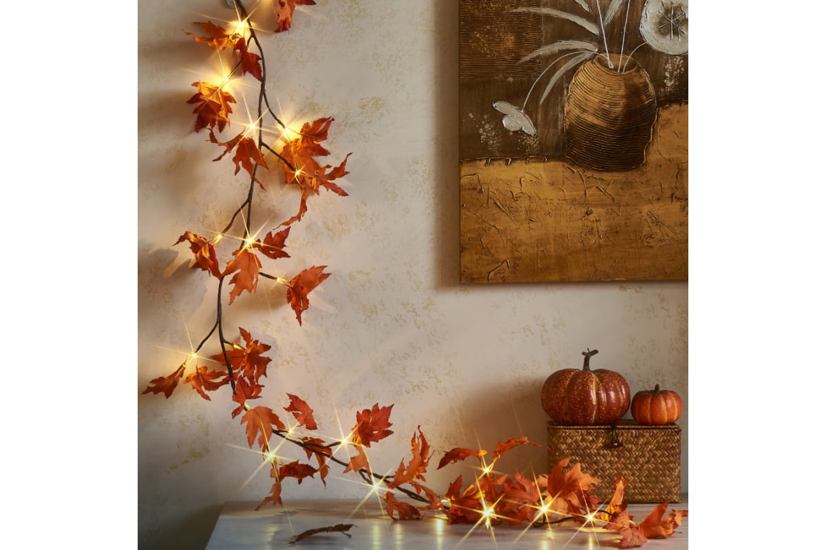 Гирлянда КОСМОС "Ветвь кленовая" светодиодная ветвь, ламп: 24 шт., 1.8 м, режимов: 1, от батареек, теплый белый (KOC_INT-B129), "Ветвь кленовая"