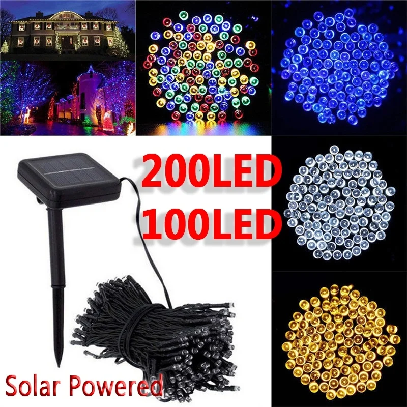 Гирлянда садовая на солнечной батарее, водонепроницаемая, 100/ 200 светодиодов