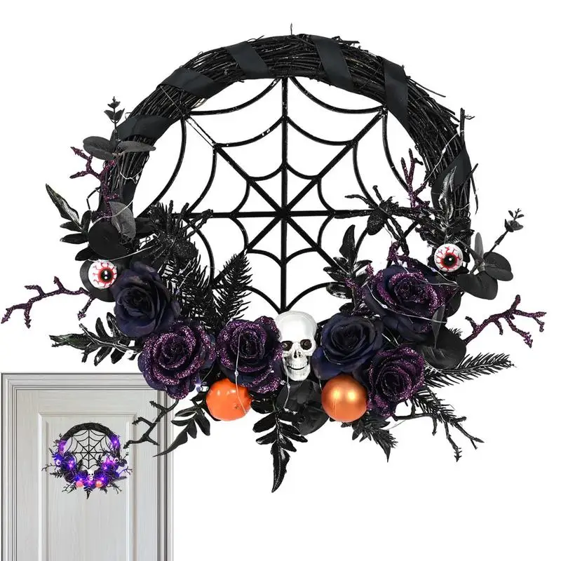 Гирлянды на Хэллоуин, праздничное украшение атмосферы, домашняя дверь, 18 дюймов, черный венок на Хэллоуин, аксессуары для украшения на Хэллоуин
