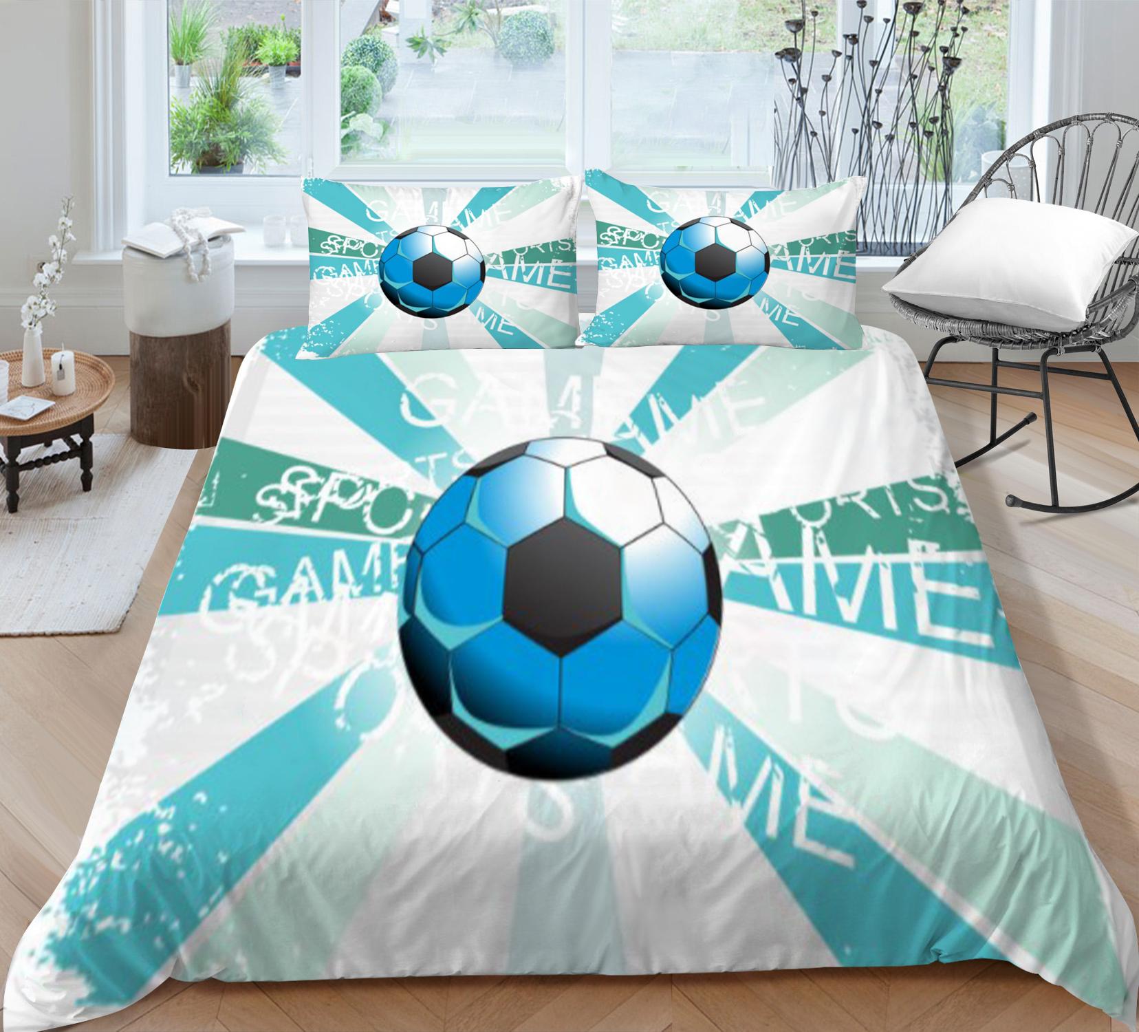Главная Декор Наволочка Дышащая Мягкая Постельное белье Футбол Принт Кровать Одеяло Крышка Синий Цвет Постель Пододеяльники Крышки Текстиль Single 135x200cm