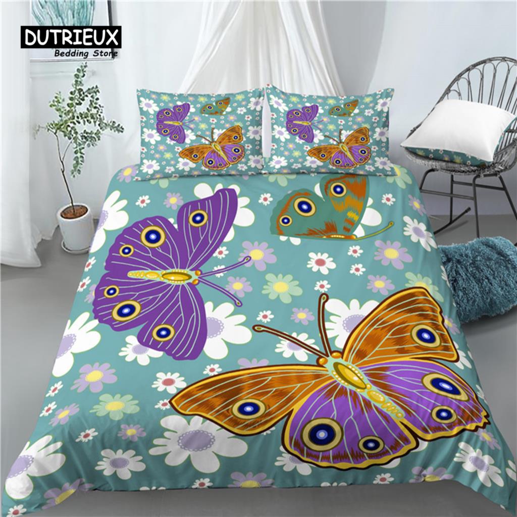 Главная Жизнь Роскошь 3D Бабочка Принт 2/3 шт Удобный Пододеяльник Наволочка Постельное белье Размер ЕС/США/Австралия EU single(135x200cm)