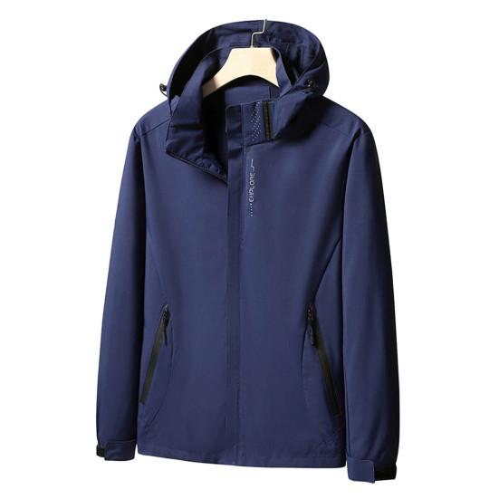 Гладкая молния с капюшоном и карманами на молнии, свободная мягкая дышащая водонепроницаемая куртка с длинными рукавами для кемпинга, альпинизма 3XL темно-синий
