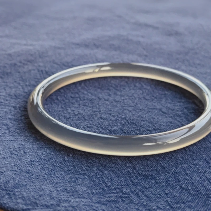Гладкий дымчатый серый халцедон, тонкий круглый браслет, ледяной серый