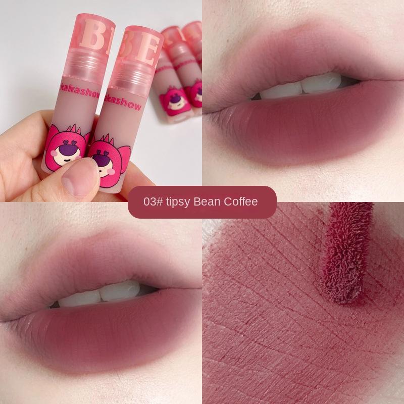 Глазурь для губ с клубничным медведем, бархатная матовая матовая глазурь, грязевая увлажняющая, не легко испачканная чашка, милая помада белого цвета