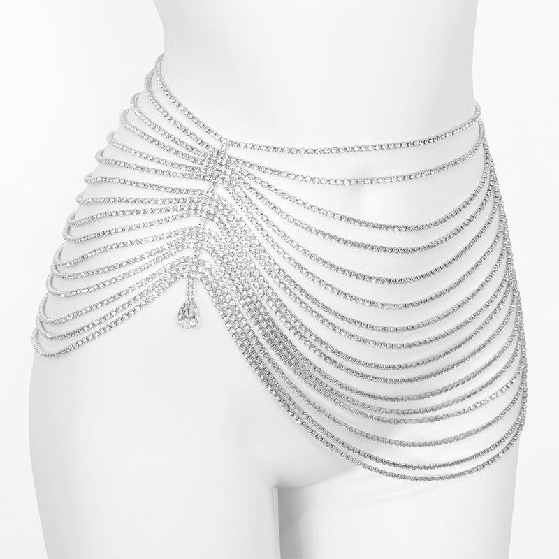 Гламурная многослойная юбка со стразами и поясная цепочка для тела для женщин серебряный