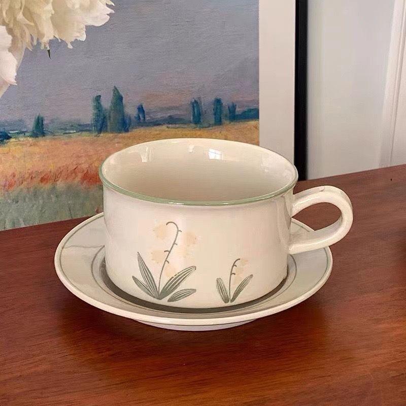 Глиняная ручная роспись стиль винтаж керамическая кофейная чашка и блюдце костюм послеобеденный чай тюльпан лилия чашка и блюдце набор 380ML зелёный