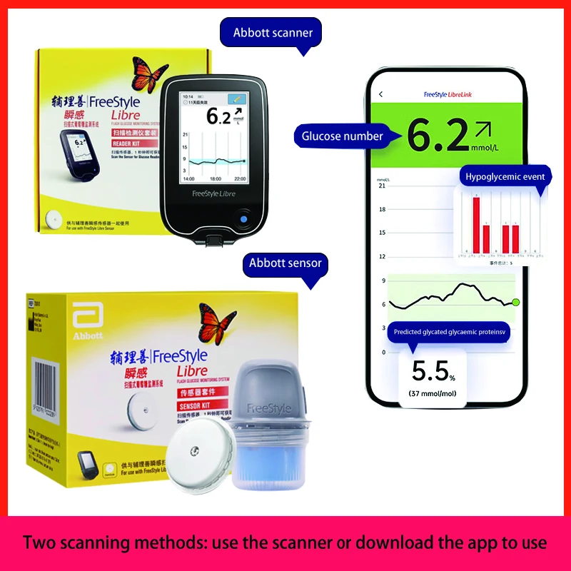 Глюкометр Abbott для измерения уровня сахара в крови без пальцев, 24 часа в режиме реального времени
